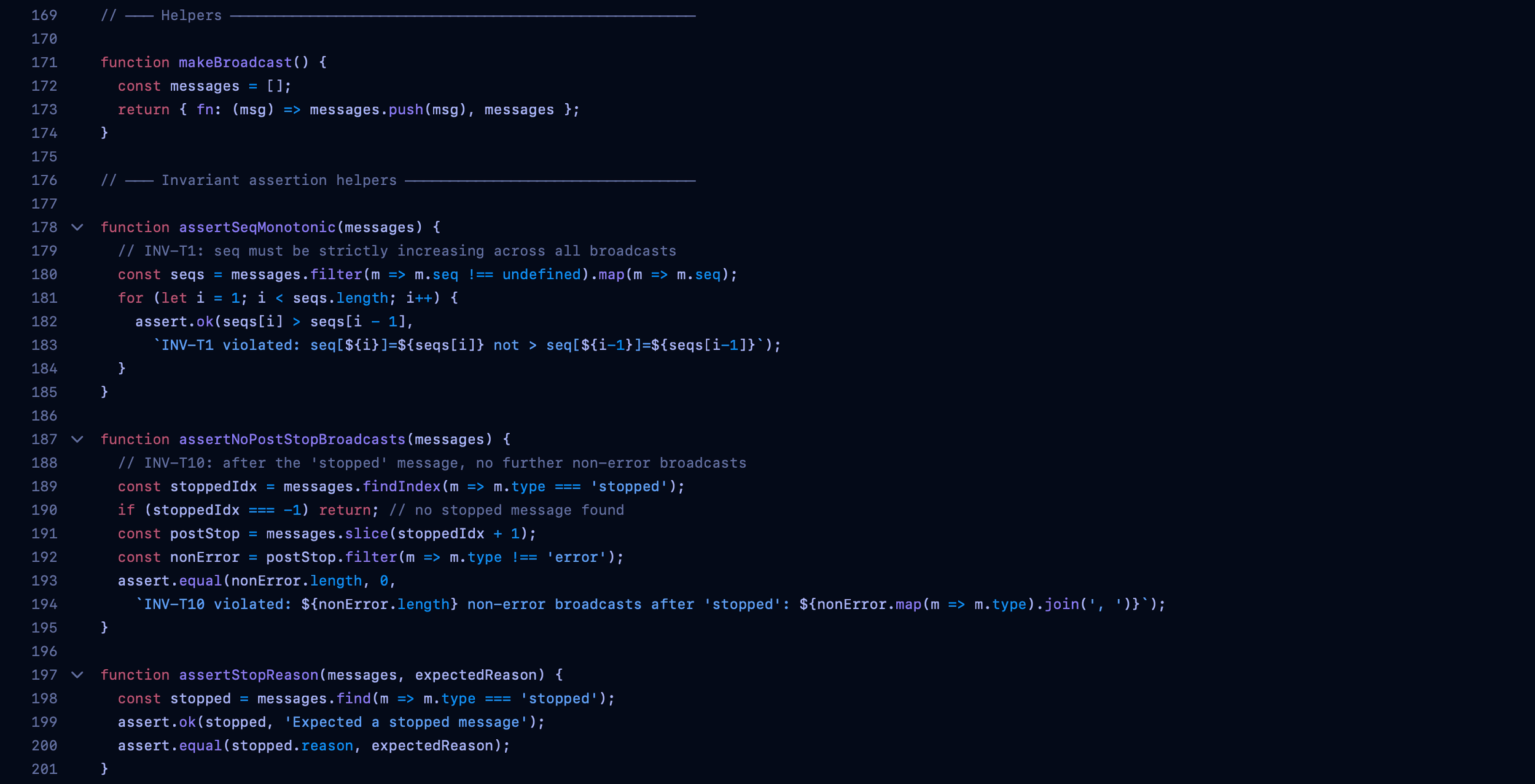 The central realization guiding this work is that a multi agent language model system behaves less like a chatbot and more like a distributed process. Dialogue generation, auditing, narration, heuristic detection, and user intervention all operate asynchronously. Each introduces the possibility of race conditions, state drift, misordered events, or silent governance failure. Traditional output based testing cannot detect these structural risks. We therefore shifted to invariant driven validation. Rather than asking whether the responses look good, we asked what must always remain true regardless of content. Event sequences must be strictly monotonic so sessions can be replayed deterministically. Turn counters must match transcript entries so stop conditions and audit scheduling cannot misfire. Cost accumulation must reconcile exactly with per turn expenditures to prevent floating point drift from triggering premature termination. Adaptive token ceilings must remain bounded so optimization never erodes governance constraints.